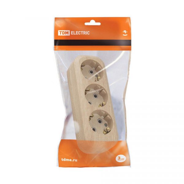 Колодка удлинителя TDM “Эко” 3гн., 16А, с/з, сосна (SQ1806-0048)