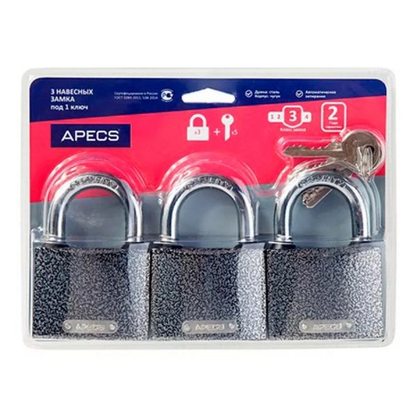 Замок навесной Avers PD-01-63 д.9мм (3 замка+5 ключей)